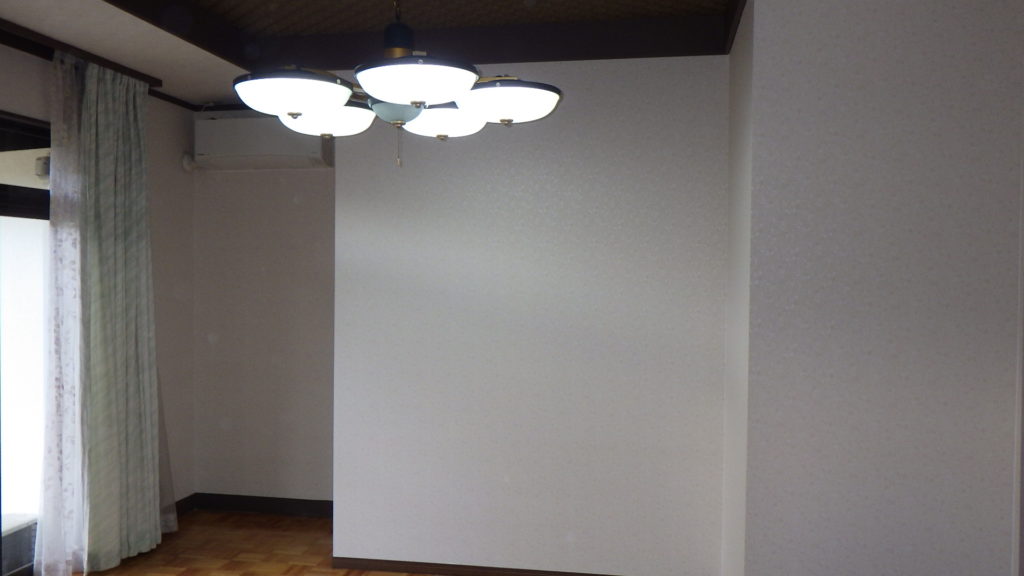 パテ処理とは、壁や天井などの下地を調整する作業のことで、下地の隙間、ビス穴等をパテで塗り、下地の表面を平にすることで、クロス(壁紙)を貼ったあとの仕上がりが綺麗になります
